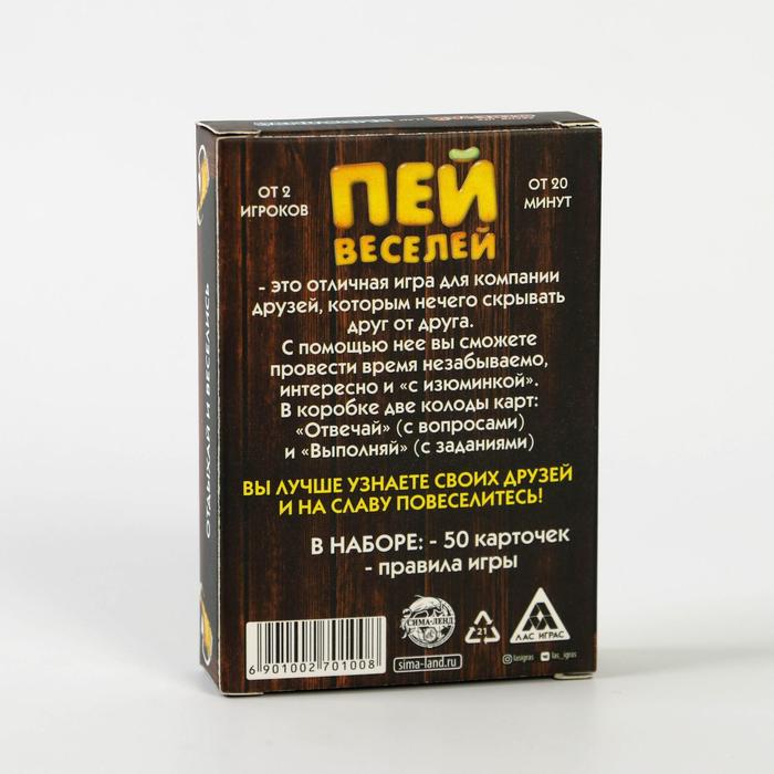 Купить игра для компании "пей веселей" 50 карт от 180 руб. с доставкой до пункта выдачи в Кадникове. Интернет магазин ДекаМаркет. Оплата при получении.